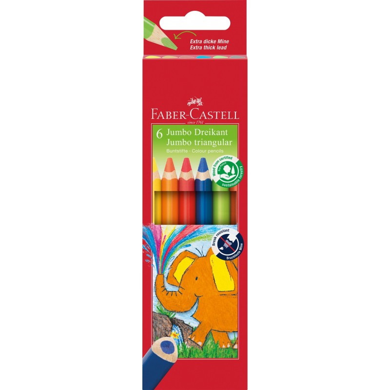 FABER-CASTELL Crayons de couleur Jumbo triangulaire, 20 étui en carton