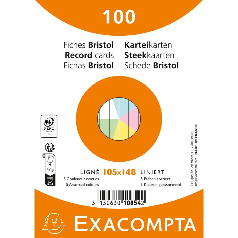 EXACOMPTA Fiches bristol, A6, uni, blanc